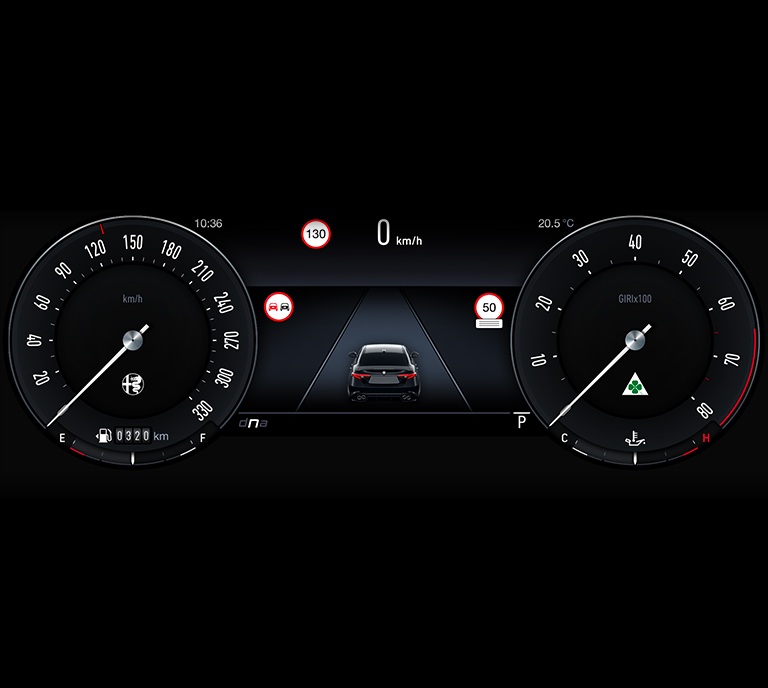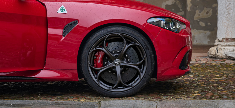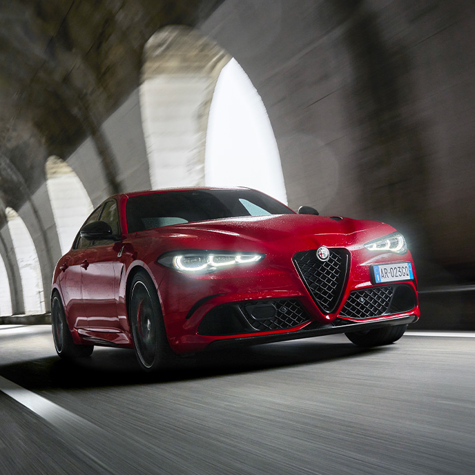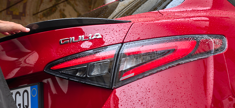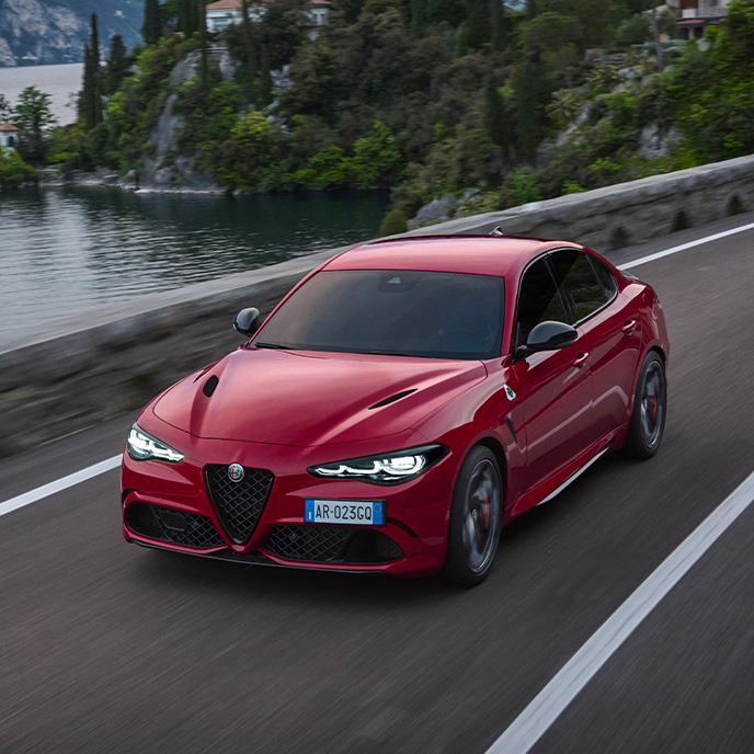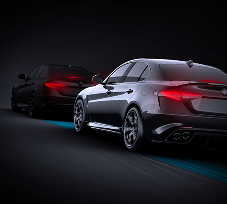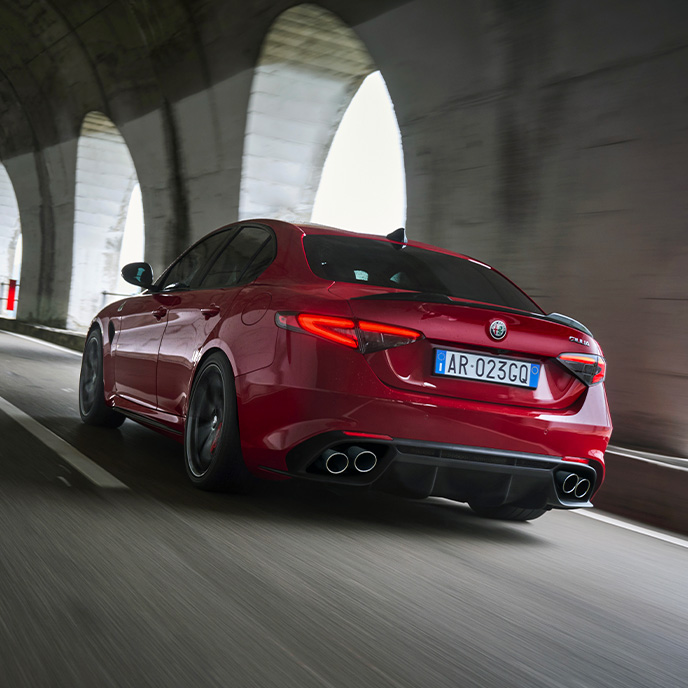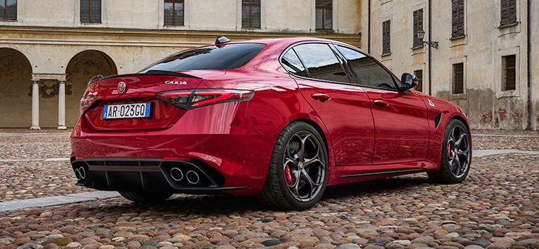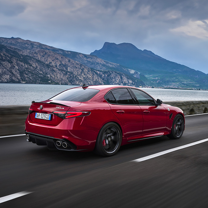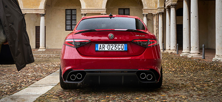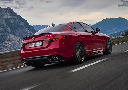 Giulia Quadrifoglio 的油耗范围(l/100 km) :10.3 - 10.1;CO₂排放量(g/km):229 - 228。根据WLTP 联合循环排放确定的型式认证值,认证于 2023 年 6 月 14 日。所示数值仅供比较。