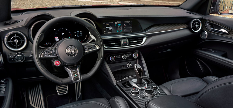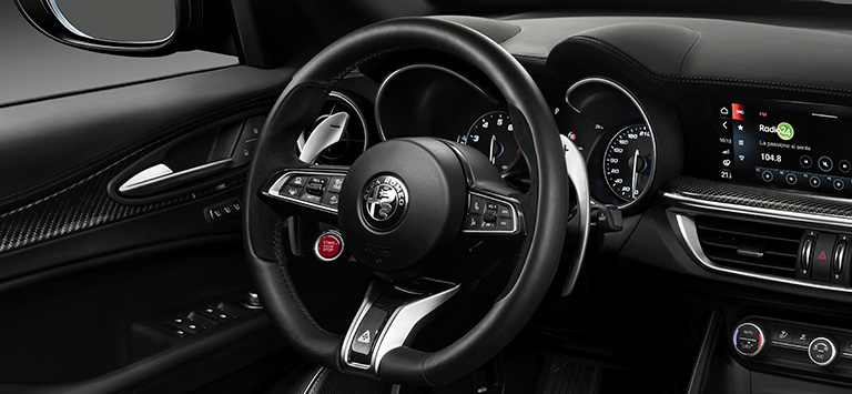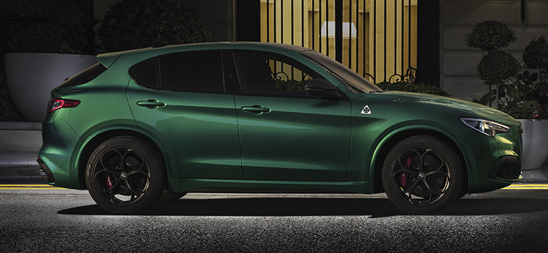Stelvio Quadrifoglio的油耗范围(升/100公里):11.8;CO2排放量(克/公里):267。型式认证值是根据2021年5月26日更新的WLTP综合循环确定的。所示的数值 仅用于比较。